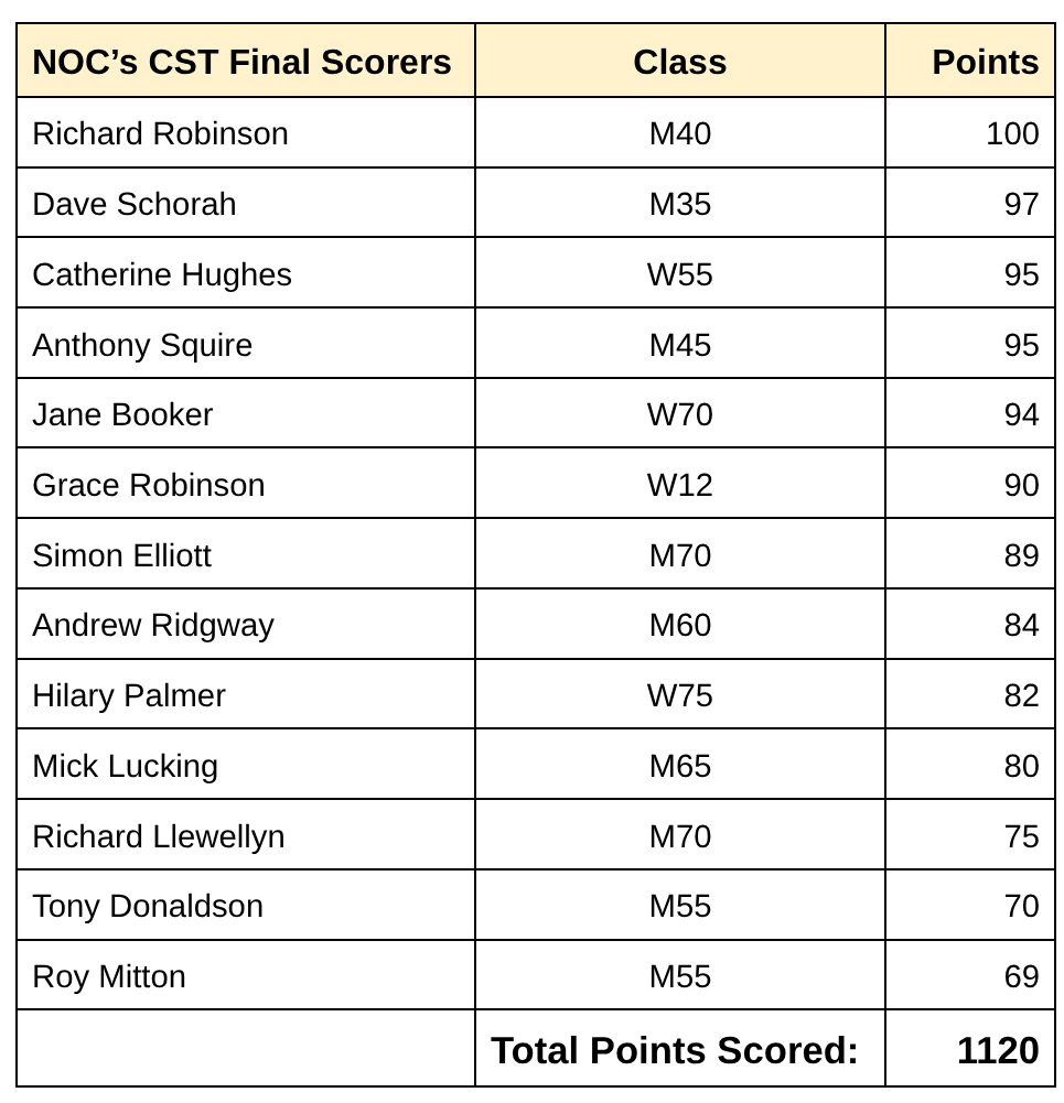 Congratulations go to all those taking part and a special mention to those that scored the points on NOC’s behalf: